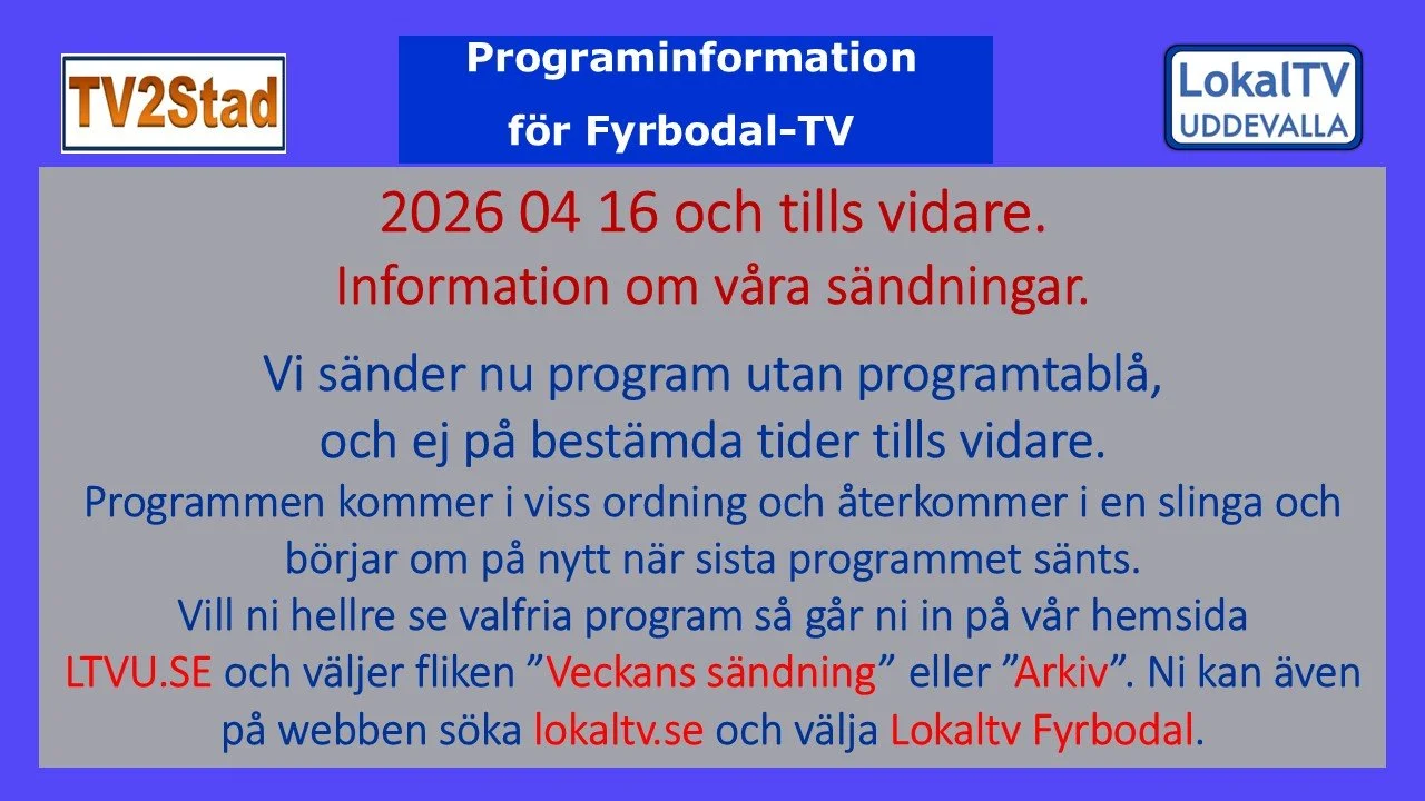 Tills vidare sänds programmet ej på de angivna fasta tiderna. Se tablåinfo.